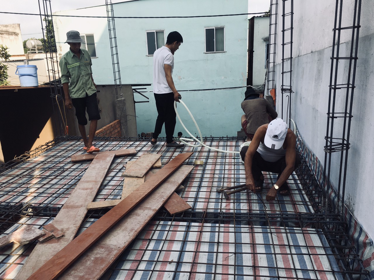 Giai đoạn thi công đan sắt sàn, chuẩn bị đổ bê tông